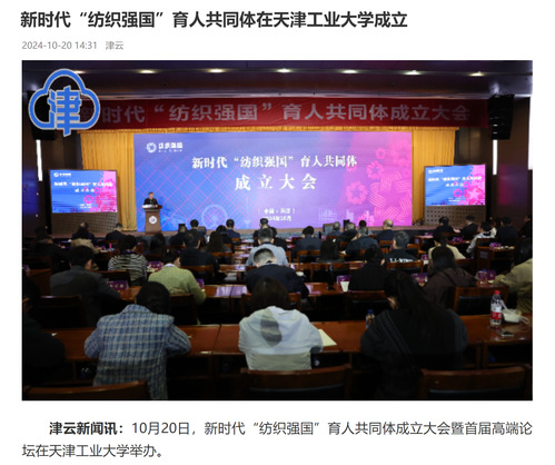 津云新闻讯:10月20日,新时代“纺织强国”育人共同体成立大会暨首届高端论坛在天津工业大学举办。