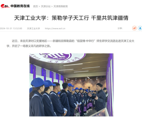 近日,来自天津对口支援地区——新疆和田策勒县的“祖国情·中华行”师生研学交流团走进天津工业大学,开启了一场意义非凡的研学之旅。