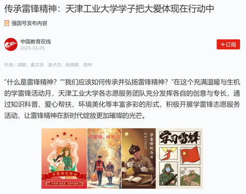 “什么是雷锋精神?”“我们应该如何传承并弘扬雷锋精神?”在这个充满温暖与生机的学雷锋活动月,天津工业大学各志愿服务团队充分发挥各自的创意与专长,通过知识科普、爱心帮扶、环境美化等丰富多彩的形式,积极开展学雷锋志愿服务活动,让雷锋精神在新时代绽放更加璀璨的光芒。