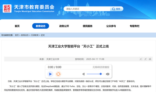 日前,天津工业大学智能平台“天小工”正式上线。学校已完成大模型平台部署,对接完成统一身份认证,师生可以通过信息门户中的“AI天工”登录访问。