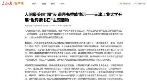 人间最美四“阅”天,最是书香能致远。在第30个世界读书日来临之际,天津工业大学的师生们以独特创意打造了一场书香盛宴,从童趣盎然的社区课堂到专业内容的学术研讨,从墨香流淌的图书市集到星光璀璨的夜校分享,让阅读的种子在四月的春风里蓬勃生长。