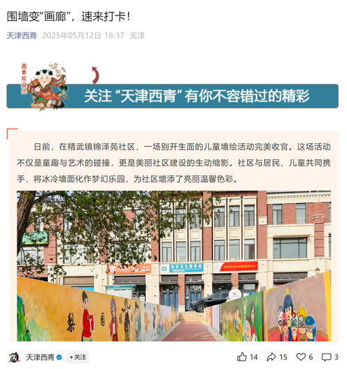 墙面上跳跃的色彩,不仅是对孩子们奇思妙想的托举,更凝聚着各方对美好社区的共同期许——这里有成长的守护、邻里的温情,更有基层治理的创新活力。未来,社区将以这片“会讲故事的墙壁”为起点,持续汇聚多元力量,让共建共治共享的种子在每一寸土地扎根,让美丽社区建设的底色更亮、成色更足、温度更暖。