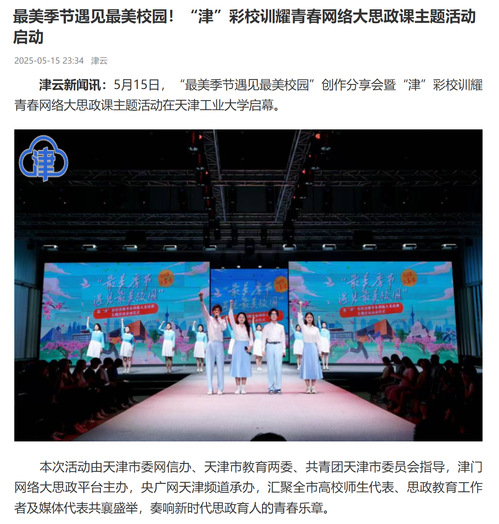 津云新闻讯:5月15日,“最美季节遇见最美校园”创作分享会暨“津”彩校训耀青春网络大思政课主题活动在天津工业大学启幕。