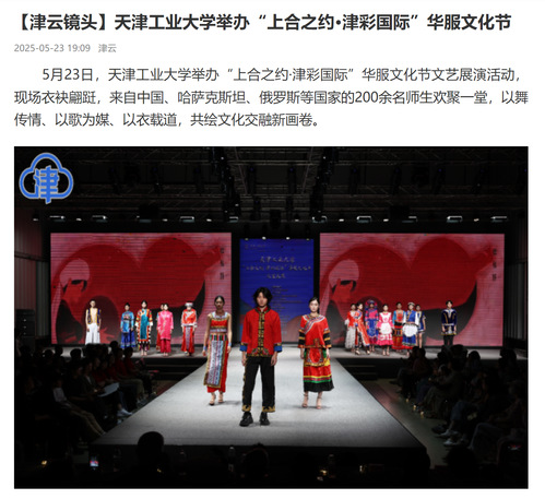 5月23日,天津工业大学举办“上合之约·津彩国际”华服文化节文艺展演活动,现场衣袂翩跹,来自中国、哈萨克斯坦、俄罗斯等国家的200余名师生欢聚一堂,以舞传情、以歌为媒、以衣载道,共绘文化交融新画卷。