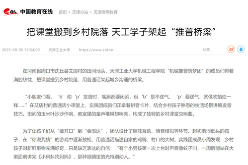 在河南省周口市沈丘县艾店村的田间地头,天津工业大学机械工程学院“机械推普筑梦团”的成员们带着满腔热忱,把课堂搬到乡村院落,用普通话架起城乡沟通的桥梁。