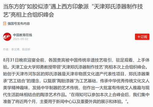 当东方的“如胶似漆”遇上西方印象派 “天津郑氏漆器制作技艺”亮相上合组织峰会