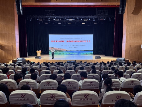 在“院长面对面”环节,刘雍以“传承天纺精神,做有担当的新时代天工人”为题作报告。他从学院百年发展历程切入,生动讲述了自1912年机织科肇始以来,一代代天纺人秉承“实业报国、教育救国、服务人民”的家国情怀。他用生动的影像图片、详实的数据图表和学院优秀教师的先进事迹,深刻阐释了天纺人在纺织领域取得的辉煌成就和“敢为人先、追求卓越”的奋斗精神,使同学们进一步感受到了学院纺织学科发展的深厚历史、一代代天纺人的精神传承与社会担当。最后,他对新生们提出14点建议,帮助新生们进一步明确了未来的努力方向,勉励新生要将个人发展融入国家战略需求,珍惜在天工的学习时光,练就过硬本领,成为服务纺织行业高质量发展和国家现代化建设的栋梁之才。