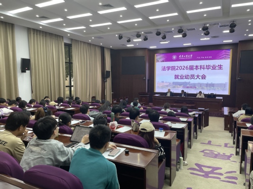 9月22日,法学院在模拟法庭召开2026届本科毕业生就业动员大会。学院班子成员、辅导员及2026届全体本科毕业生参会,大会由党委副书记方桂珍主持。