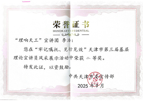 近日,“牢记嘱托 见行见效”天津市第三届基层理论宣讲员风采展示活动正式落下帷幕。我校推荐的“理响天工”宣讲团宣讲作品《AI赛道上的天津攻略》从来自全市各行各业各战线创作的参赛宣讲作品中脱颖而出,荣获语言类二等奖。