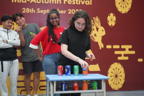 互动游戏环节更添欢乐氛围。“你画我猜”中,同学们用画笔勾勒“嫦娥”“玉兔”“京剧脸谱”等文化符号,在协作中加深对中国文化的认知;传统“神投手竞赛”(投壶)里,大家站在3米外瞄准投箭,在手眼协调的比拼中体验中国古代游戏的乐趣;“你追我赶”“你换我猜”等游戏也让现场笑声不断,中外学生在互动中拉近距离,友谊悄然升温。