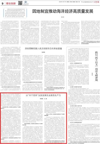 2025年中央一号文件首次提出发展农业新质生产力,强调“以科技创新引领先进生产要素集聚,因地制宜发展农业新质生产力”。当前,我国要实现从农业大国向农业强国的转变,必须以农业新质生产力为牵引,走出一条农业高质量发展之路。农业新质生产力是突破传统生产要素依赖,充分应用现代生物技术、人工智能等新一轮科技革命成果,通过对劳动者、劳动资料和劳动对象进行优化组合而形成的先进生产力。大力发展农业新质生产力,是推动农业全面升级、保障粮食安全的重要举措,也对加快农业农村现代化、推进乡村全面振兴具有深远意义。