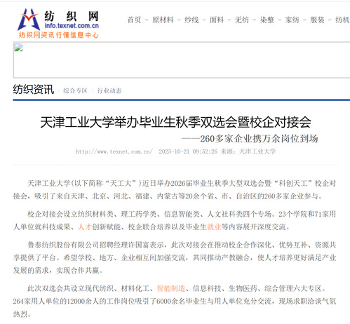 天津工业大学举办毕业生秋季双选会暨校企对接会
