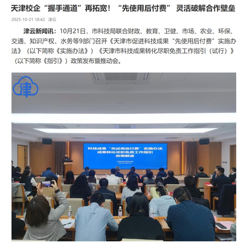 据悉,“先使用后付费”模式是破解高校院所与中小企业合作壁垒、推动科技成果就地转化的重要机制创新。此次政策发布是构建“政策引导+平台支撑+服务保障+金融赋能”的全链条成果转化生态的有力举措,对加速科技成果向现实生产力转化、赋能天津经济高质量发展具有重要意义。
