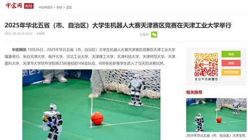 中宏网讯 10月26日,2025年华北五省(市、自治区)大学生机器人大赛天津赛区竞赛在天津工业大学隆重举行。来自天津大学、南开大学、河北工业大学、天津理工大学、天津科技大学、天津师范大学、天津医科大学、天津市大学软件学院等23所高校的166支队伍、600余名参赛学生进入了当天的决赛比拼。