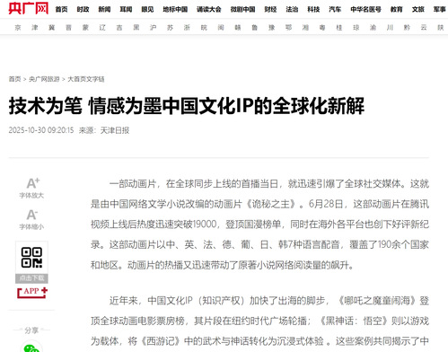 近年来,中国文化IP(知识产权)加快了出海的脚步,《哪吒之魔童闹海》登顶全球动画电影票房榜,其片段在纽约时代广场轮播;《黑神话:悟空》则以游戏为载体,将《西游记》中的武术与神话转化为沉浸式体验 。这些案例共同揭示了中国文化IP的数字化升级趋势——通过技术赋能与情感共鸣,实现从单向输出到全球共创的生态转型。