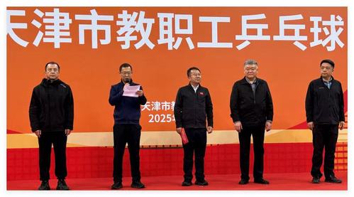 11月2日,由天津市教育工会主办的新时代天津市教职工乒乓球团体赛在我校体育馆开幕。市总工会党组成员、经费审查委员会主任王克文,市教育招生考试院党委副书记孙全胜,市教育工会相关负责同志,我校副校长沈浩鹏出席开幕式。