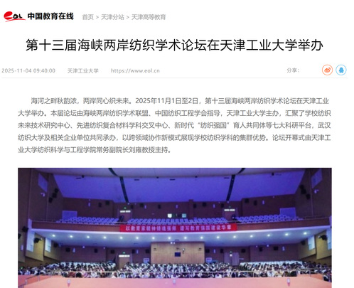 面向未来,天津工业大学将继续强化“未来纺织+”学科群建设,聚焦新质生产力培育,为推动我国纺织行业高端化、智能化、绿色化发展注入持续动能,在服务国家战略和区域发展中书写天工新篇章。