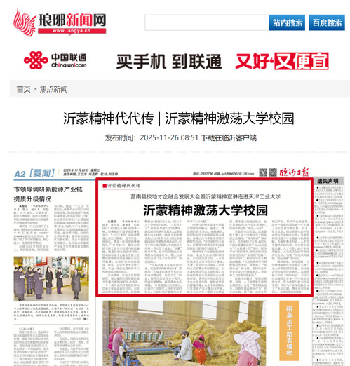 精神如炬,照亮前路。当沂蒙精神的红色火种在天津工业大学的校园里点燃,当校地合作的蓝图徐徐展开,这场跨越千里的“双向奔赴”,不仅让红色基因在青春一代中焕发新的生机,更为教育与地方协同发展、科技与产业深度融合写下了生动注脚,携手书写校地同心、共谋发展的新篇章。