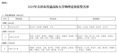 近日,2025年天津市普通高校大学物理竞赛获奖名单正式揭晓。我校学子在本届竞赛中发挥出色,取得一等奖4名,二等奖13名,三等奖13名的优异成绩,充分展现了我校学生扎实的物理理论基础、卓越的科学创新能力和积极向上的精神风貌。