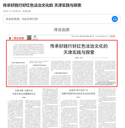 党的二十届四中全会提出,发展具有强大思想引领力、精神凝聚力、价值感召力、国际影响力的新时代中国特色社会主义文化,扎实推进文化强国建设。天津作为马克思主义早期传播的重镇,拥有深厚的红色法治文化资源。进入新时代,天津围绕落实“八五”普法规划“加强红色法治文化保护、宣传、传承”的要求,融合发展法治文化、红色文化、中华优秀传统文化,推动红色法治文化的创造性转化与创新性发展,形成了一条挖掘历史资源、构建制度保障、探索多元实践的“天津路径”。
