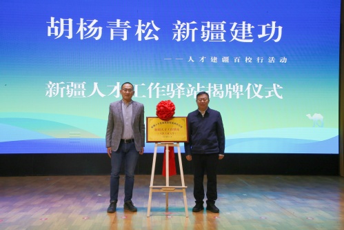仪式上,杨嘉琛与张道良共同为“新疆人才工作驿站”揭牌。