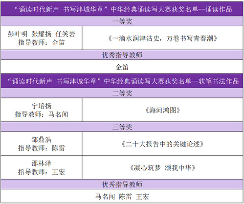 近日,由天津市教委主办的“诵读时代新声 书写津城华章”中华经典诵读写大赛获奖结果揭晓。我校学子在诵读与软笔书法两个赛道中表现优异,斩获多项奖项。其中,由彭叶明、张耀扬、任笑岩三名学生报送的《一滴水润津沽史,万卷书写青春潮》诵读作品荣获高校组一等奖(全市仅2项),充分展现了我校学子深厚的文化素养与昂扬向上的精神风貌。