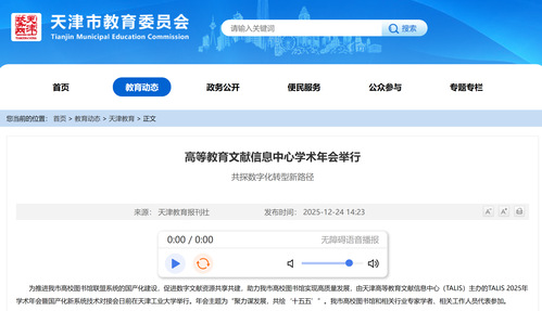 为推进我市高校图书馆联盟系统的国产化建设,促进数字文献资源共享共建,助力我市高校图书馆实现高质量发展,由天津高等教育文献信息中心(TALIS)主办的TALIS 2025年学术年会暨国产化新系统技术对接会日前在天津工业大学举行。年会主题为“聚力谋发展,共绘‘十五五’”。我市高校图书馆和相关行业专家学者、相关工作人员代表参加。