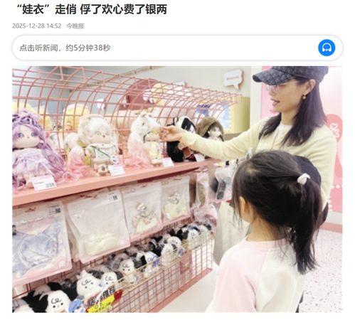 临近春节,给“娃”添置新衣成为当下消费新选择。只不过,这里的“娃”并非孩童,而是各式各样的玩偶。棉花娃娃、BJD人偶等玩偶的专属服饰“娃衣”,既俘获了年轻人的欢心,也成了孩子们的心头好,线下门店人气升温,线上选购更是热度不减,悄然掀起了一股新春“娃衣”消费热潮。