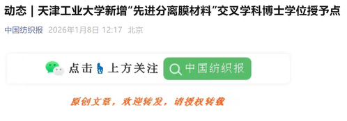 动态 | 天津工业大学新增“先进分离膜材料”交叉学科博士学位授予点