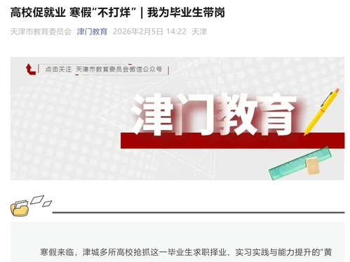 寒假来临,津城多所高校抢抓这一毕业生求职择业、实习实践与能力提升的“黄金窗口期”,围绕暖心送岗、暖心拓岗、暖心助航等内容,连日来马不停蹄地开展各种促就业举措,以就业服务“不打烊”、就业指导“不断线”,助力毕业生“好就业”“就好业”。