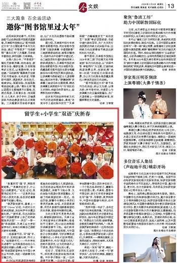 一起表演节目、写“福”字、包饺子、互相交换礼物,昨日上午,“丝路新年汇——中外学生共话春节”全民阅读活动在少儿阅读空间暖心启幕,4名“一带一路”沿线国家留学生与中国小学生以书为桥,共赴一场新春文化交融之约。