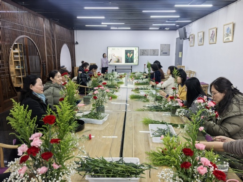 活动伊始,书院领导为到场的女教师们送上了节日祝福。活动特别邀请了资深花艺师刘宗丽现场指导。刘老师首先为大家带来了一场生动的花艺美学分享,从插花艺术的起源与发展,到东西方插花的风格差异,再到鲜花色彩搭配的基本原则,她用通俗易懂的语言和丰富的案例,带领大家走进了花艺的奇妙世界。“每一朵花都有自己的语言,每一种搭配都藏着独特的情感。”刘老师的讲解让在场的老师们对插花艺术有了全新的认识,也激发了大家动手创作的热情。
