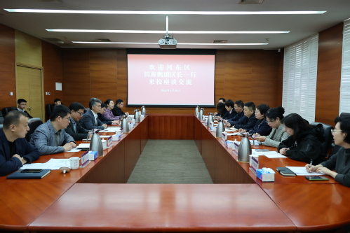 田海鹏高度评价我校在学科建设、科研创新和育人成效方面取得的显著成就,并向学校长期以来为河东区经济社会发展提供的人才和智力支持表示感谢。希望双方开展全面战略合作,在联合培养高水平人才、共建大学生实习实践与就业基地、打造高水平科普与非遗传承基地等方面开展更深层次、更广领域的合作,实现资源共享、优势叠加、发展共赢。