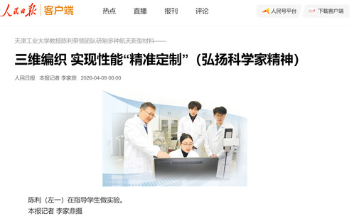 天津工业大学教授陈利带领团队研制多种航天新型材料——