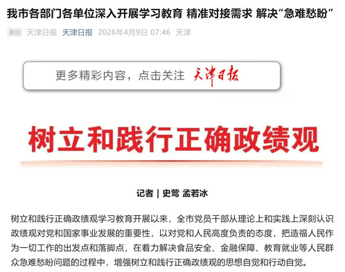树立和践行正确政绩观学习教育开展以来,全市党员干部从理论上和实践上深刻认识政绩观对党和国家事业发展的重要性,以对党和人民高度负责的态度,把造福人民作为一切工作的出发点和落脚点,在着力解决食品安全、金融保障、教育就业等人民群众急难愁盼问题的过程中,增强树立和践行正确政绩观的思想自觉和行动自觉。