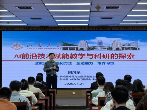 4月21日,由人工智能学院主办的2026年卓越工程师培养系列论坛在会议中心第七会议室成功举办。本期论坛以“AI前沿技术赋能教学与科研的探索”为题,特邀国家重点研发计划项目首席科学家、山东大学机器人研究中心博士生导师周风余教授为主讲嘉宾,人工智能学院师生代表以及2024、2025级卓越工程师参加了本次报告会。