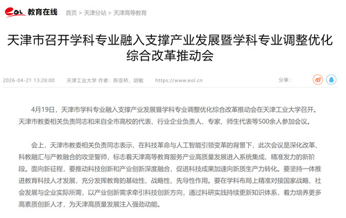 天津市召开学科专业融入支撑产业发展暨学科专业调整优化综合改革推动会