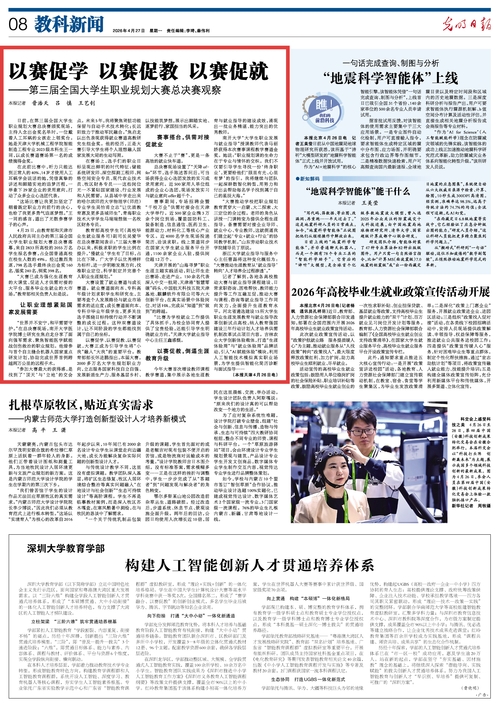 记者了解到,各地各高校推动大赛与就业指导课程建设、日常求职咨询、困难帮扶、教师能力提升等工作互融互促,推动大赛与课程、咨询等就业指导工作同向发力,全面提升生涯教育水平。河北省遴选建设15所大学生职业生涯发展教育与就业指导改革创新试点高校,纳入教育强国建设三年行动计划人才培养供需机制改革试点项目内容。吉林农业大学创新体验载体,打造“生涯体验周”与“就业体验周”品牌活动,引入“AI赋能体验”模块,利用人工智能技术模拟真实职业场景,为学生提供智能化简历诊断与面试指导……