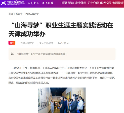 4月25日下午,由教育部、天津市人民政府主办,天津市教育委员会、天津工业大学承办的第三届全国大学生职业规划大赛总决赛同期活动——“山海寻梦”职业生涯主题实践活动圆满落幕。来自全国各省市观摩团及本市师生代表一起走进天津市代表性产业前沿与创新平台,开展了一场沉浸式、互动式的职业探索与实践之旅。